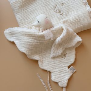 Doudou Lange Sherpa écru – Motif Fleuri vintage