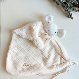 Doudou Léo le Souriceau – Souris d’hiver en fourrure/ motif