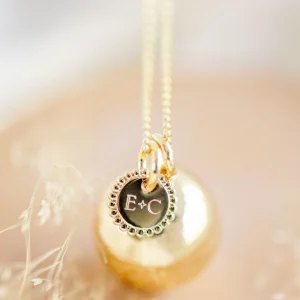 Pendentif médaille perlée gravée de vos initiales – Personnalisable