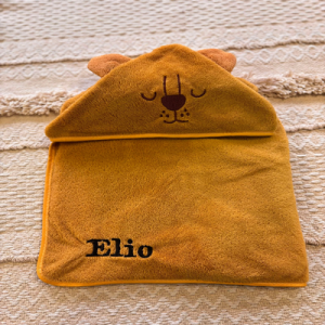 Cape de Bain Bébé Personnalisée – Tête de Petit Ours Moutarde Brodée Cadeau Unique et Doux pour Bébé, Idéal pour Naissance, Baptême et Plus
