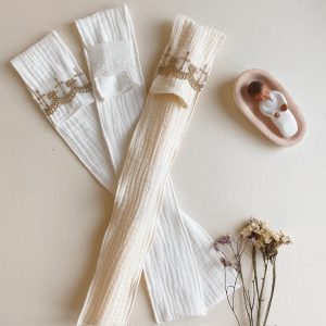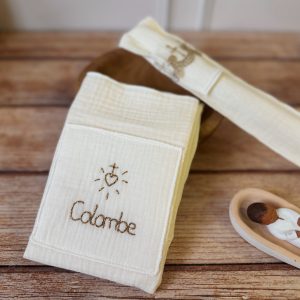 Le DUO : lange de baptême ÉCRU et protège cierge écru