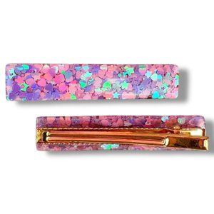 Barrette Plate – Méli mélo violet et rose