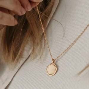 Collier personnalisé mini médaille ronde martelée or EMPREINTE