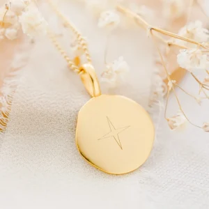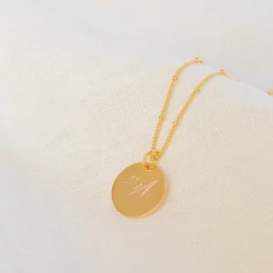 Pendentif personnalisé gravé ronde or initiale EMOTIONS DOUCES