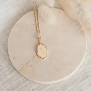 Pendentif personnalisé gravé médaille ovale florale or ÉPURE