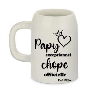 Chope Personnalisée Papy Exceptionnel – Cadeau Fête des Grands-Pères avec Prénoms – Chope Officielle 500 ml Gravée