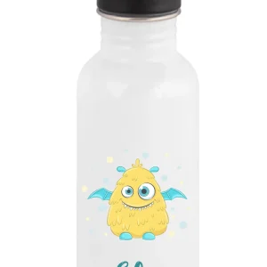 Gourde enfant personnalisée – Monstre jaune rigolo – Gourde paille 600 ml avec prénom – École maternelle