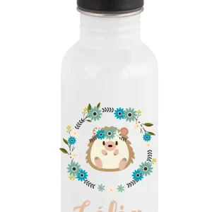 Gourde enfant personnalisée – Hérisson fleuri – Prénom au choix – Gourde 600 ml bouchon paille – Bébé Panda