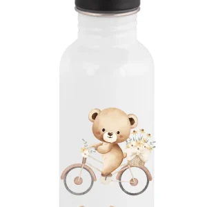 Gourde paille 600 ml personnalisée Ours à vélo – Prénom enfant – Cadeau école et sport