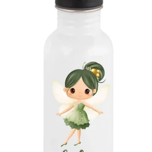 Gourde Paille 600 ml Motif Fée verte – Personnalisée avec Prénom – Idéale Rentrée Scolaire – Compatible Lave-vaisselle