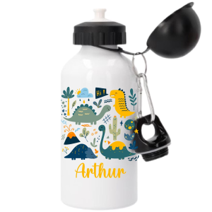 Gourde sport 500 ml personnalisée motif dino – Prénom personnalisé – Rentrée scolaire