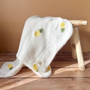 Couverture d’été 100% gaze de coton – Motif Ananas brodés
