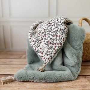 Couverture Chaude Fourrure Verte amande – Motif Fleurs des bois