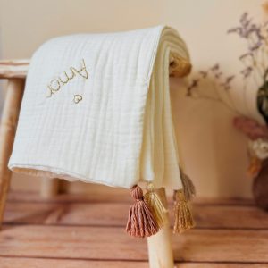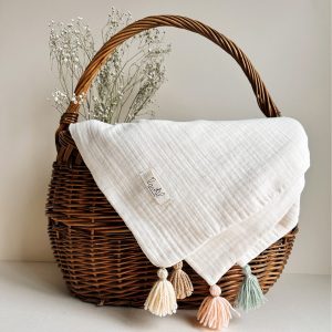 Couverture « plein été » en triple gaze de coton – Choix des pompons