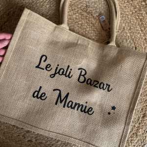 Sac Shopping Coton & Jute Personnalisé – « Les Petites Affaires de Mamie » | Grand Format 34x44x18 cm | Cadeau Fête des Mamies |