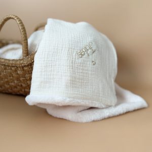 Couverture Chaude – Gaze de coton / fourrure écrue SANS POMPONS