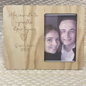 Cadre Photo Personnalisé en Bois – Gravure « Mon Cœur est à Toi » – Cadeau Saint-Valentin ou Mariage