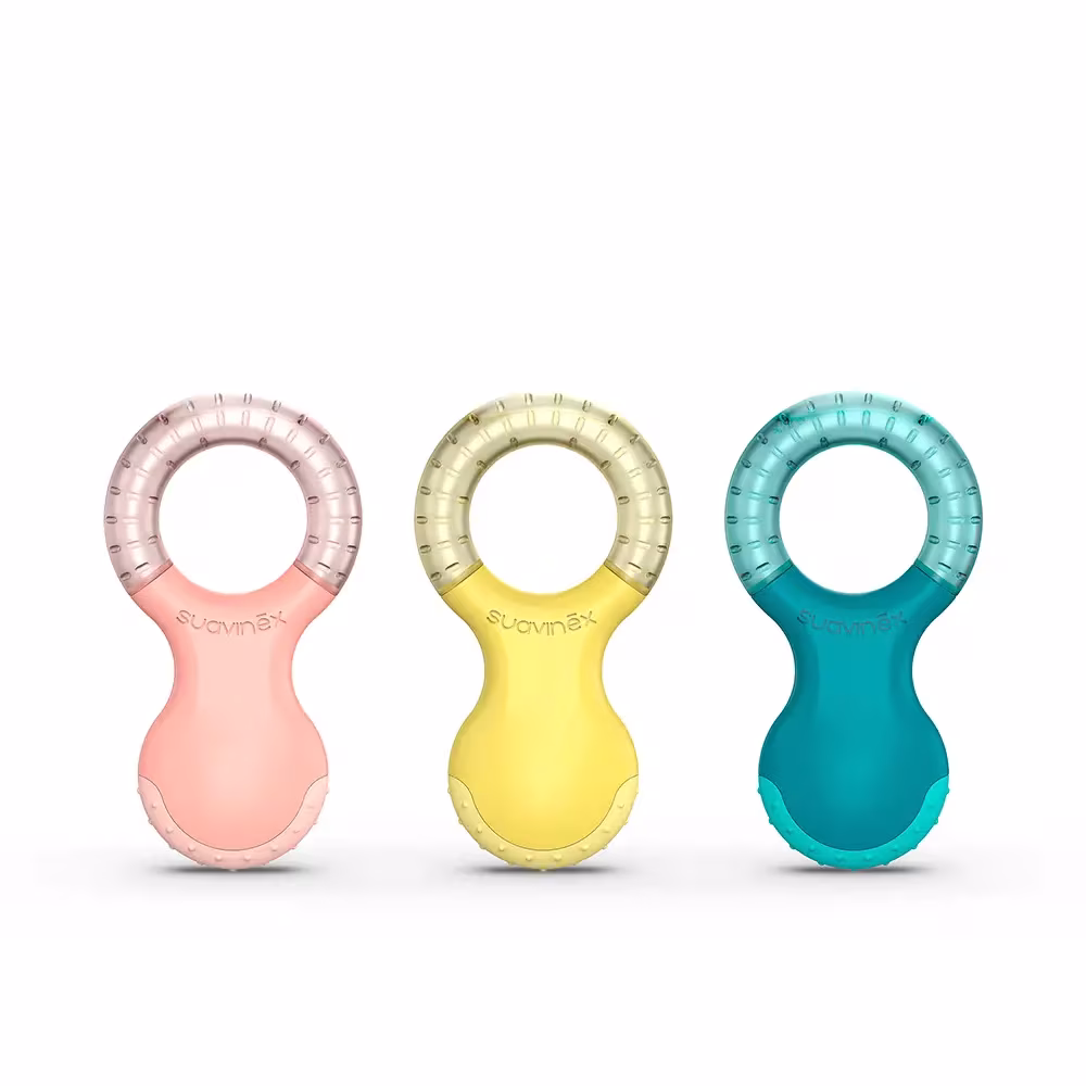 Les anneaux de dentition réfrigérants Suavinex sont spécialement conçus pour soulager bébé durant l’arrivée des premières dents. Leur effet froid agit immédiatement sur les gencives sensibles, réduisant l’inconfort et apportant une sensation apaisante durable.