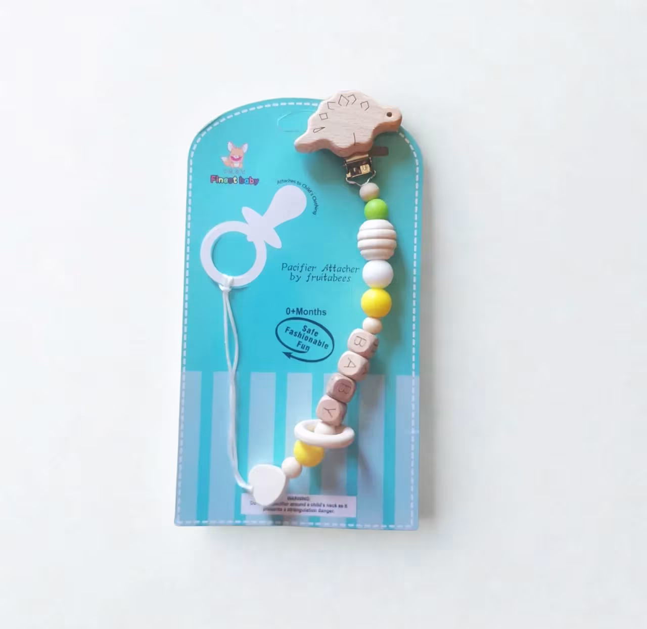 Attache-sucette en bois et silicone de qualité supérieure : pratique et utile pour de nombreuses applications. Idéale pour garder la sucette toujours à portée de main.