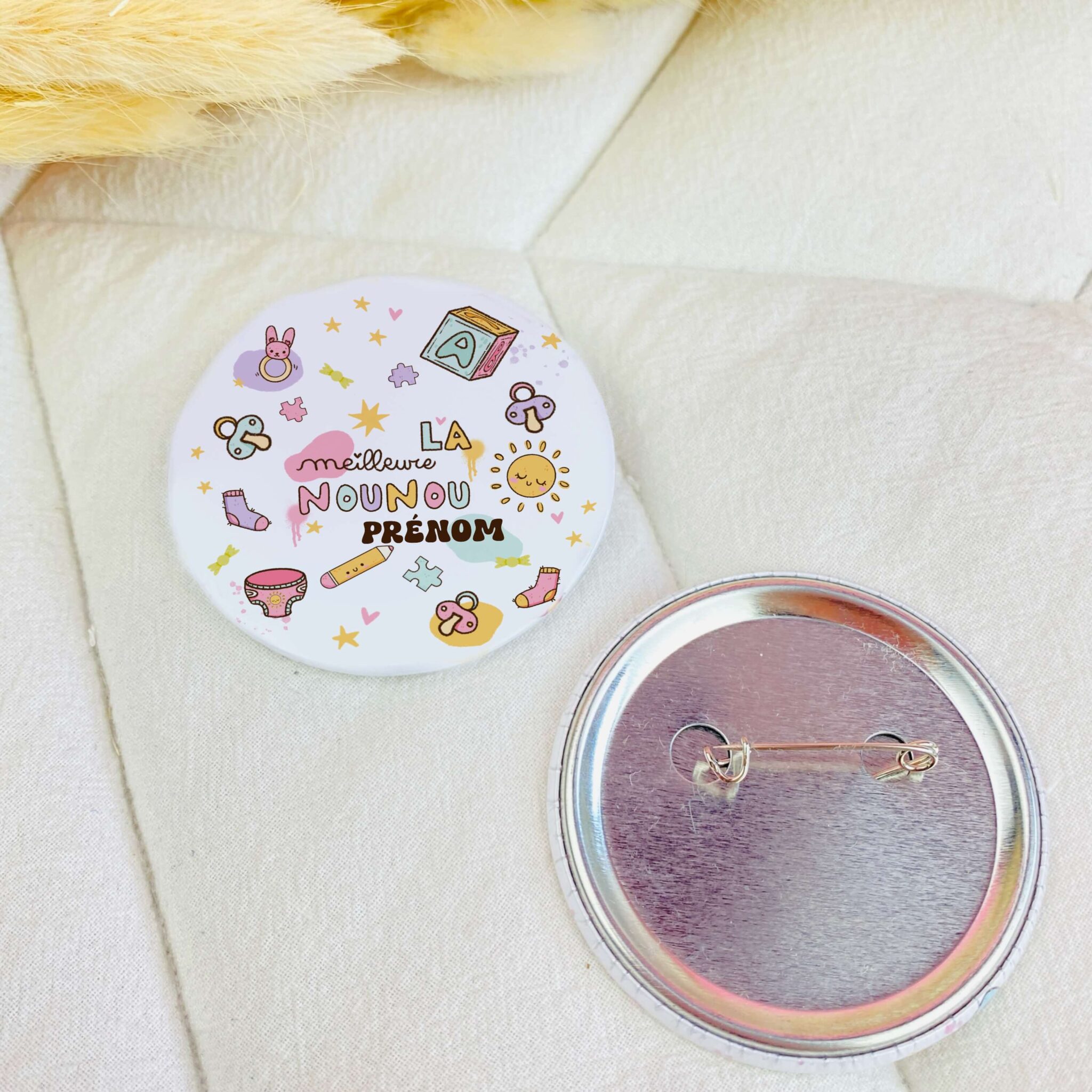 Un joli Badge pour venir décorer votre veste en jean, trousse, sac à main … bref une multitude de possibilités en plus d’être personnalisé