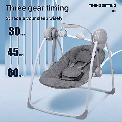 Ce fauteuil à bascule innovant intègre une musique apaisante pour l’aider à s’endormir paisiblement. Son design pliable et bionique facilite son rangement et son transport, ce qui en fait un choix pratique pour les parents en déplacement.