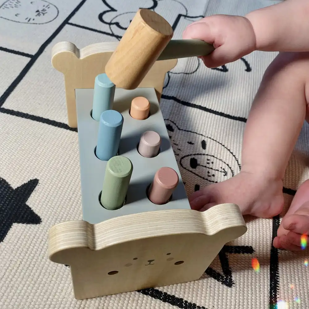 En s’amusant à enfoncer les blocs à l’aide du marteau en bois, bébé développera de nombreuses capacités motrices et cognitives . Cela l’aidera à développer sa coordination, sa précision, sa dextérité, sa motricité fine, et aussi d’apprendre à contrôler ses mouvements.