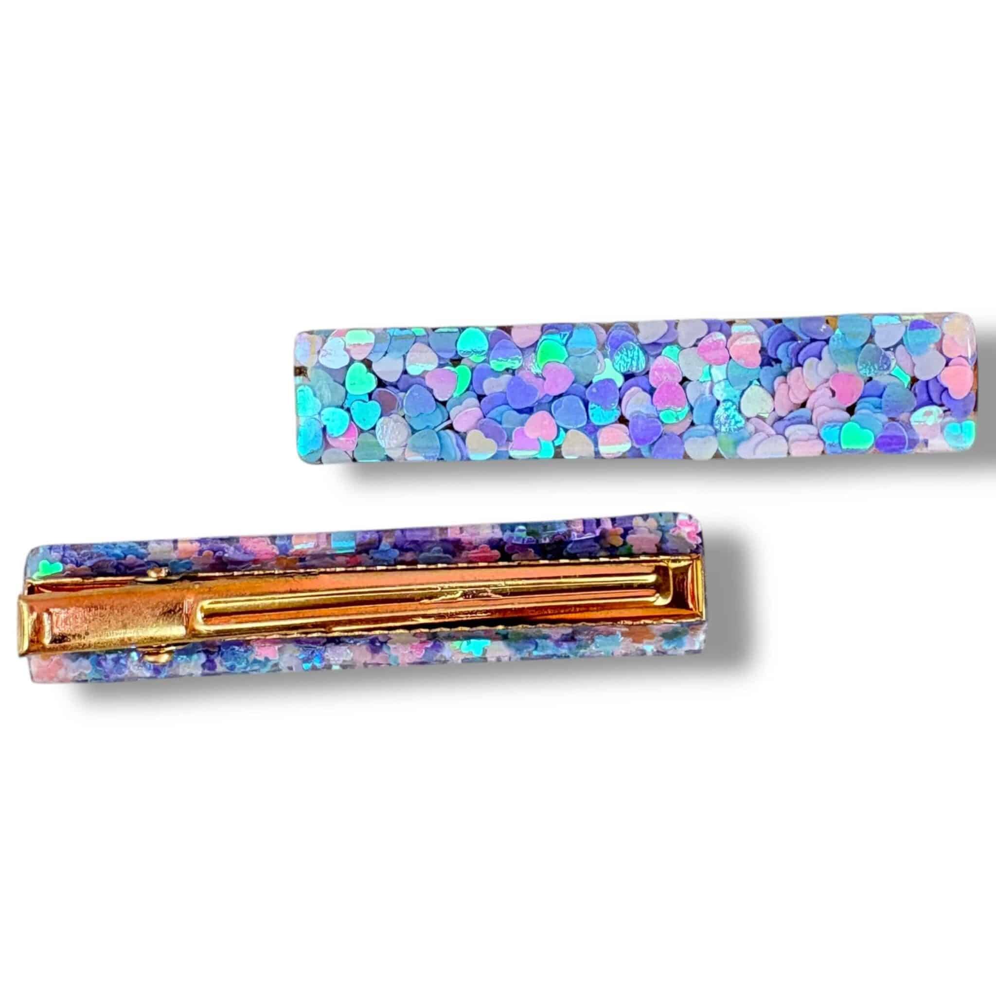 Les barrettes sont toutes uniques en fonction du placement des paillettes lors de leur conception.