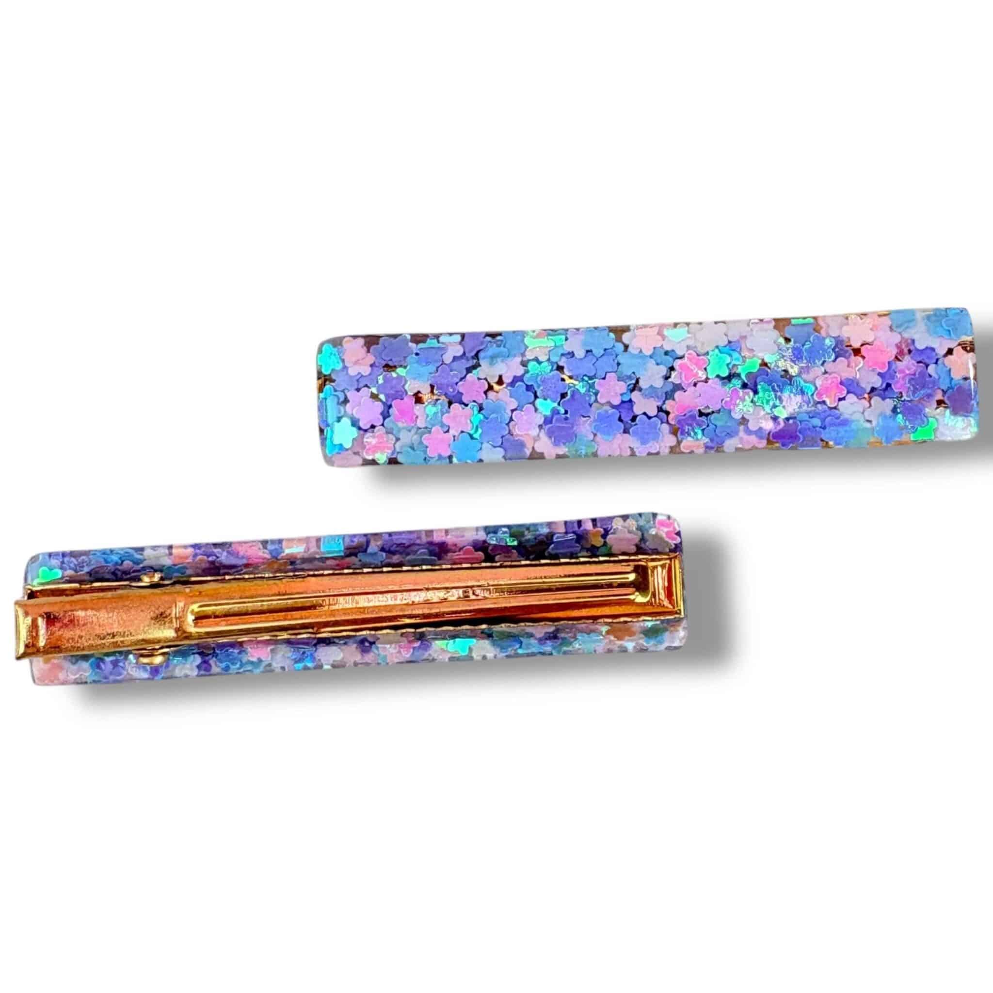 Les barrettes sont toutes uniques en fonction du placement des paillettes lors de leur conception.