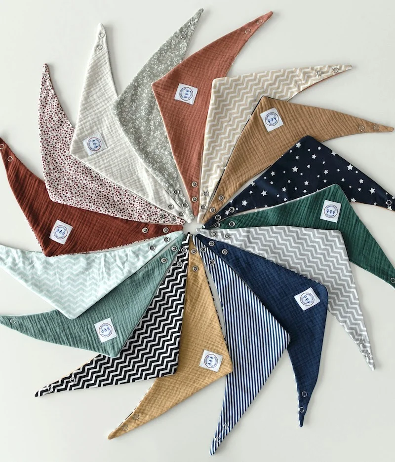 Le bavoir bandana est l’accessoire chic et tendance pour protéger bébé lors de ses premiers repas et également recommandé lorsque bébé fait ses dents pour absorber la salive.