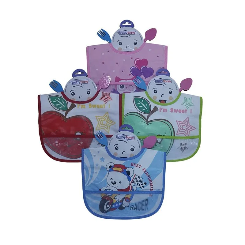Bavoir imperméable avec poche – Baby Tone, fabriqué à partir de tissu imperméable facile à nettoyer, résistant aux taches et aux odeurs.