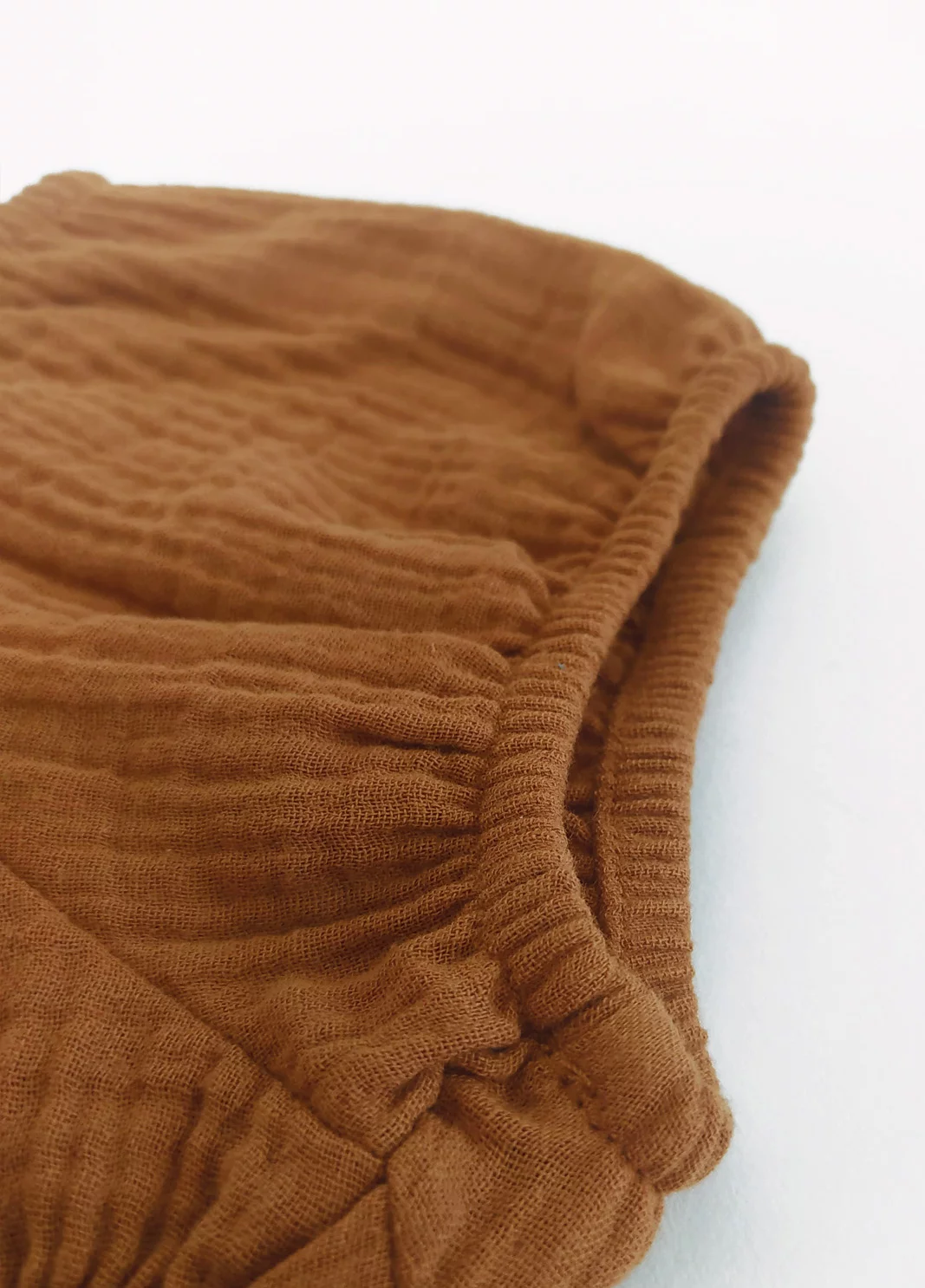 Nous vous proposons donc tout une gamme de bloomers dans de nombreux coloris afin d’égayer les tenues et d’apporter une touche de couleur. Sa couleur CANNELLE, tendance et intemporelle ravira autant les enfants que leurs parents!