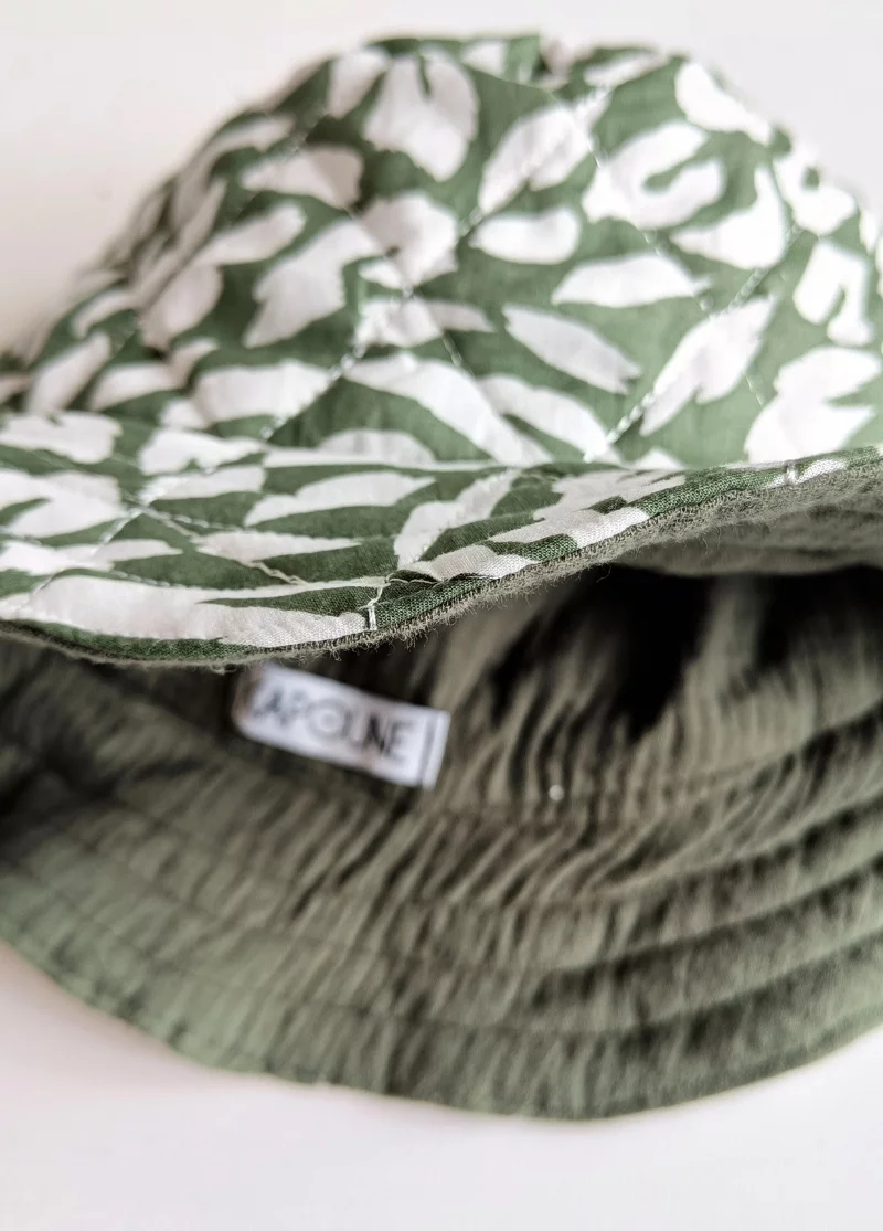 Envie d’un accessoire qui mixe style, confort et engagement ? Le bob femme réversible WILD a tout bon. Fabriqué dans notre atelier à Nantes, ce bob en coton matelassé se porte d’un côté ou de l’autre, selon vos envies du jour : motif graphique exclusif Kapoune d’un côté, tissu uni intemporel de l’autre. Deux looks en un, sans faire de compromis.