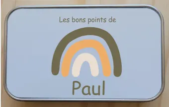 Cette petite boîte en métal personnalisée au prénom de votre choix est parfaite pour ranger les bons points, petites récompenses ou trésors d’écolier.