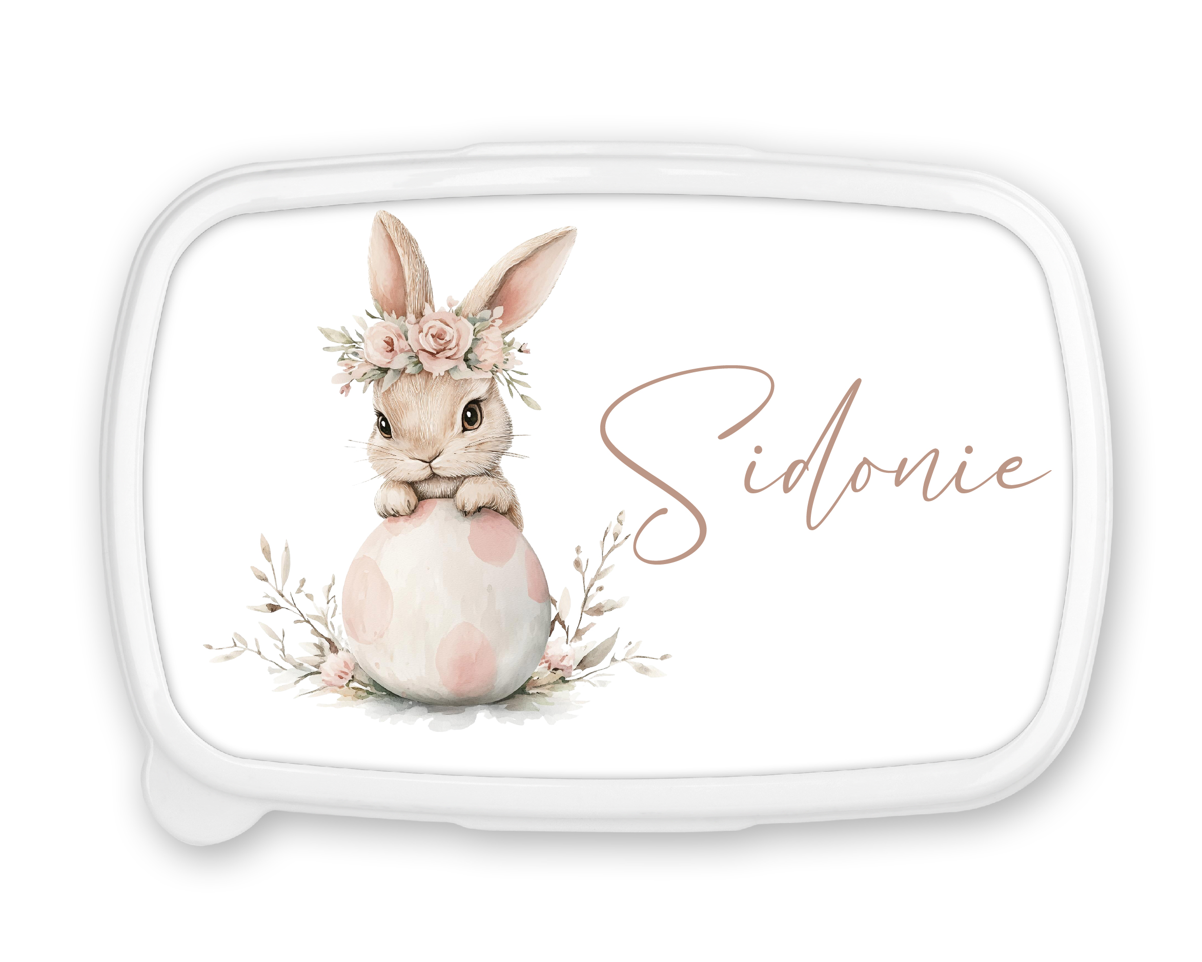 Offrez un cadeau de Pâques adorable et pratique avec cette boîte à goûter personnalisée au design mignon de lapin. Disponible avec un fond bleu ou rose, cette boîte est idéale pour les enfants qui aiment emporter leurs snacks ou petits encas. Personnalisez-la avec le prénom de votre enfant pour un cadeau spécial et unique.