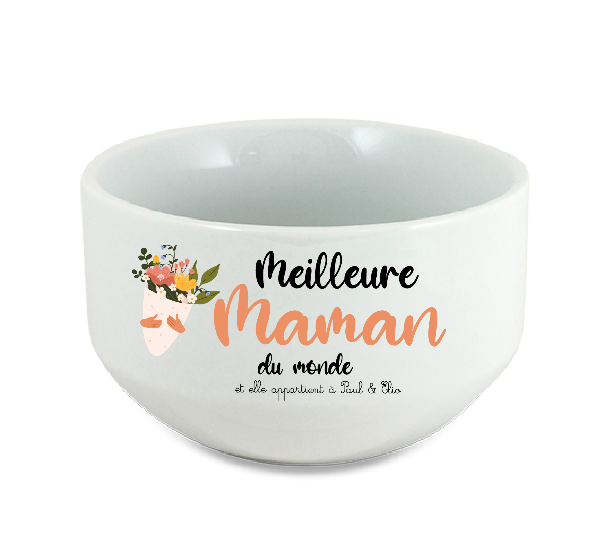 Note : Le bol peut être personnalisé avec les prénoms des enfants, pour un cadeau encore plus personnel et touchant.