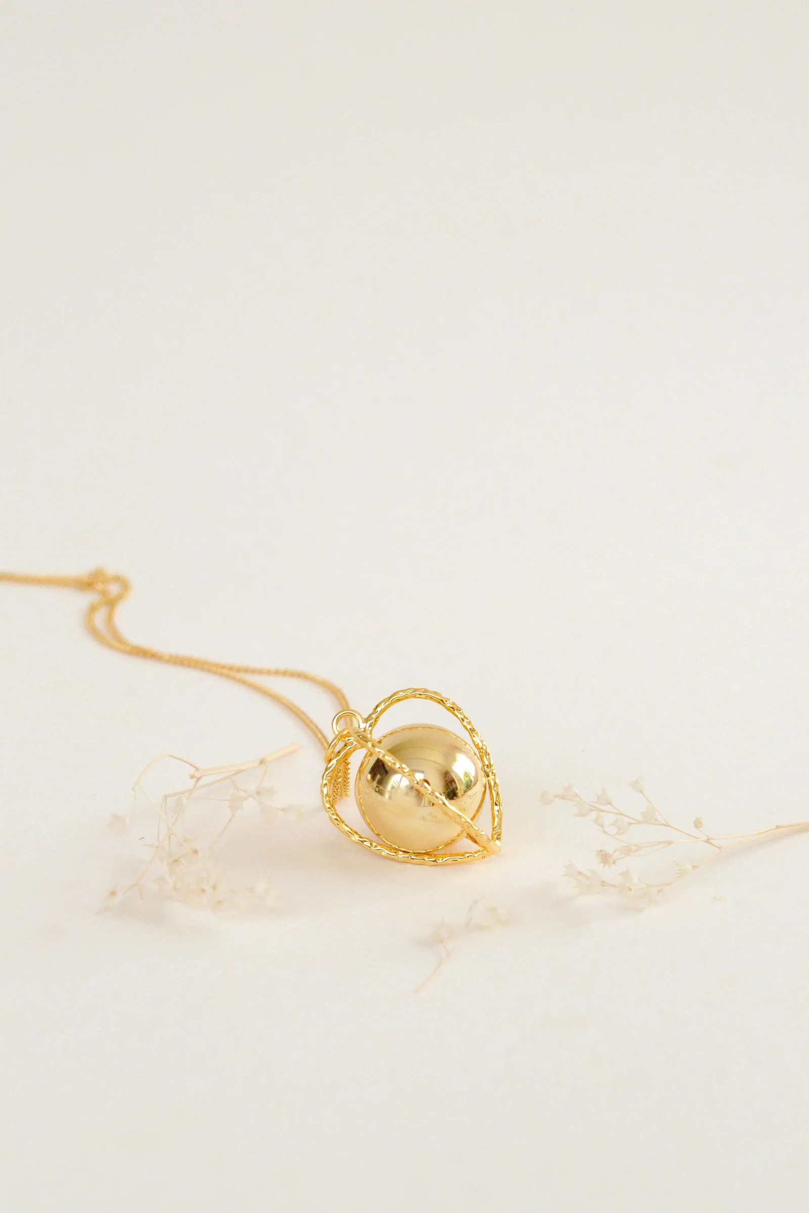 Tel le physalis qui protège son fruit de lumière, notre bola de grossesse Amour en cage recouvert d’or 18 carats célèbre la vie qui s’abrite, porté par la protection maternelle. Il en reprend sa forme poétique, une fine cage ouvragée abritant le plus précieux des secrets. Son tintement délicat accompagnera les neuf premiers mois in utero de votre bébé et bien au-delà, après sa naissance.