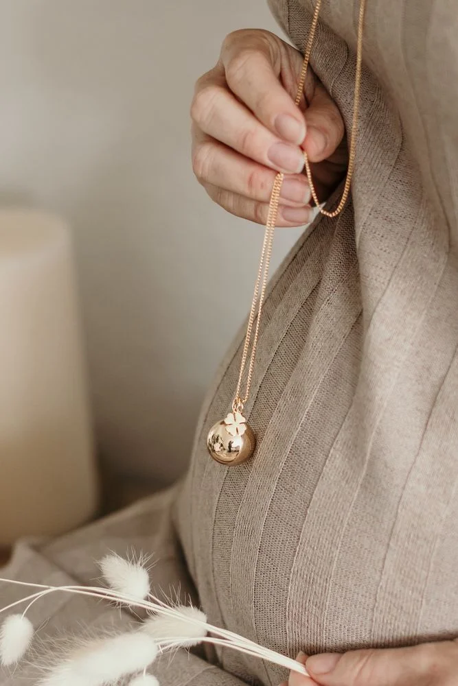 Sur notre bola de grossesse Gri-Gri le symbole du trèfle à quatre feuilles, un charm porte-bonheur.