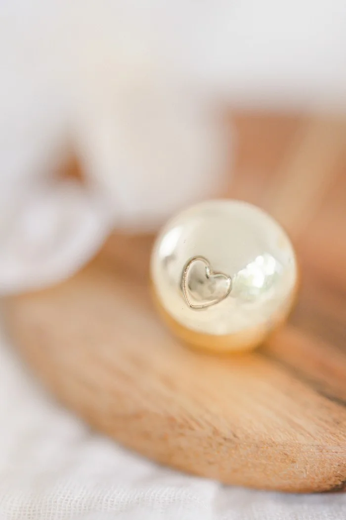 - Sous sa sphère sonore recouverte d’or 18 carats ou d’argent un petit coeur gravé