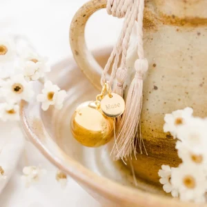 Notre bola de grossesse personnalisé signe astrologique Cosmos doré à l’or fin 18 carats ou plaqué argent célèbre la maternité. Tissez un lien unique avec votre bébé grâce à la douce mélodie de cet élégant collier de grossesse. Rendez ce bijou unique en personnalisant sa médaille d’un signe astro et de l’un de vos mots doux.