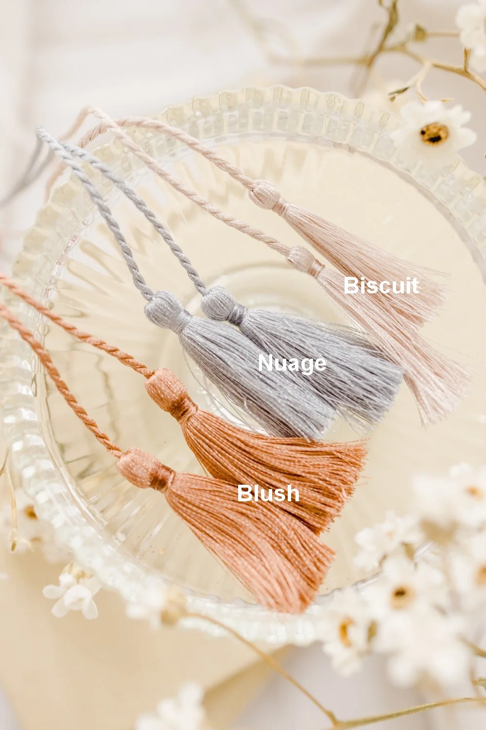 • Cordon de soie tressé ou torsadé fini de doux pompons