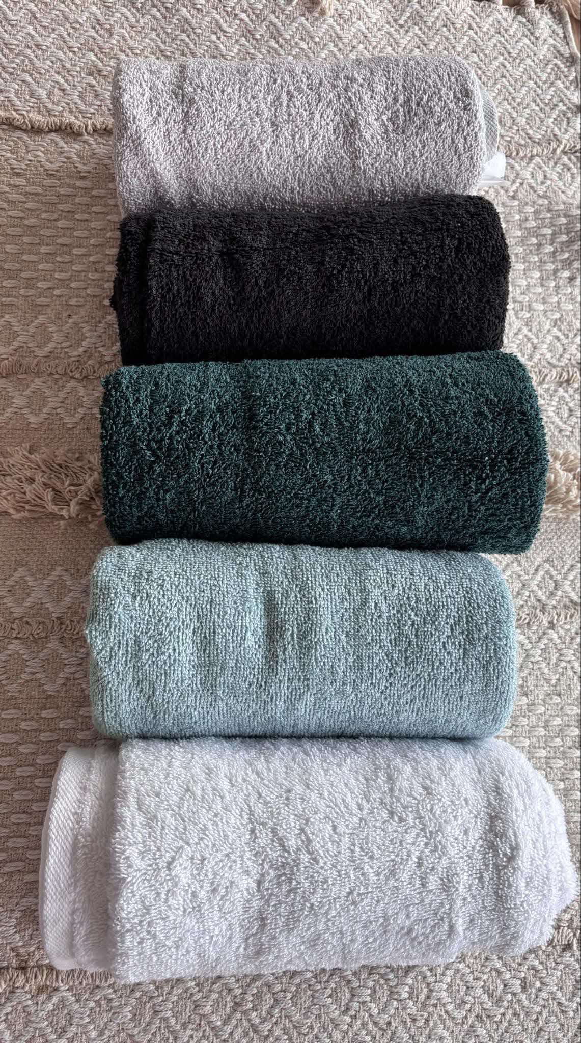 Dimensions idéales : Les serviettes mesurent 70×140 cm, parfaites pour une utilisation quotidienne, et les serviette invité sont de taille standard.
