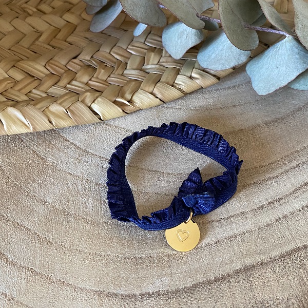 Bracelet froufrou élastique, blanc, noir, gris, rose ou bleu marine