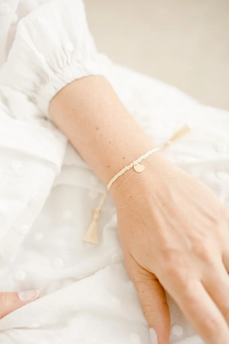 Notre bracelet Baume au coeur se personnalise avec nos charms cœurs recouverts d’or 18 carats. Des petits cœurs ronds et généreux représentant chacun le cœur battant d’un de vos enfants. Noué à votre poignet, il représente le lien indéfectible mère-enfant.