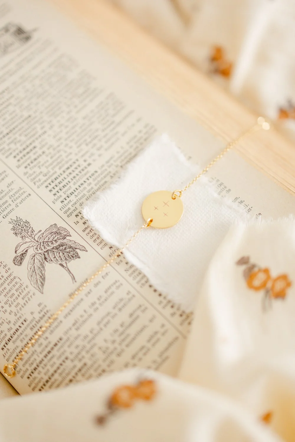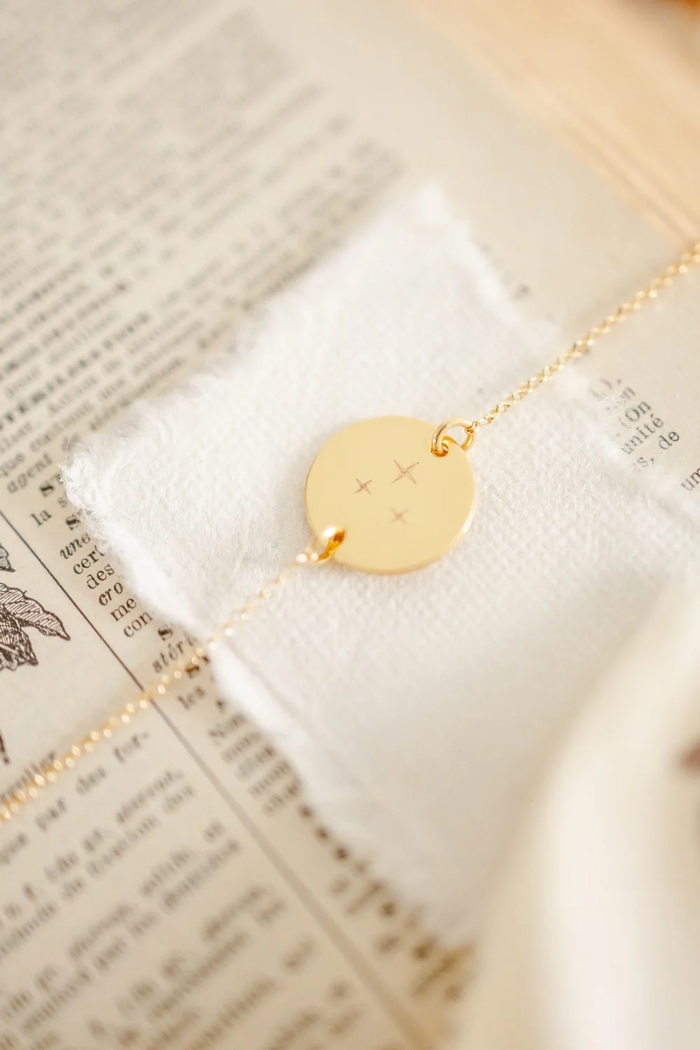 Soyez le premier à laisser votre avis sur “Bracelet personnalisé pastille chaine gravé étoiles or CIEL ETOILE”