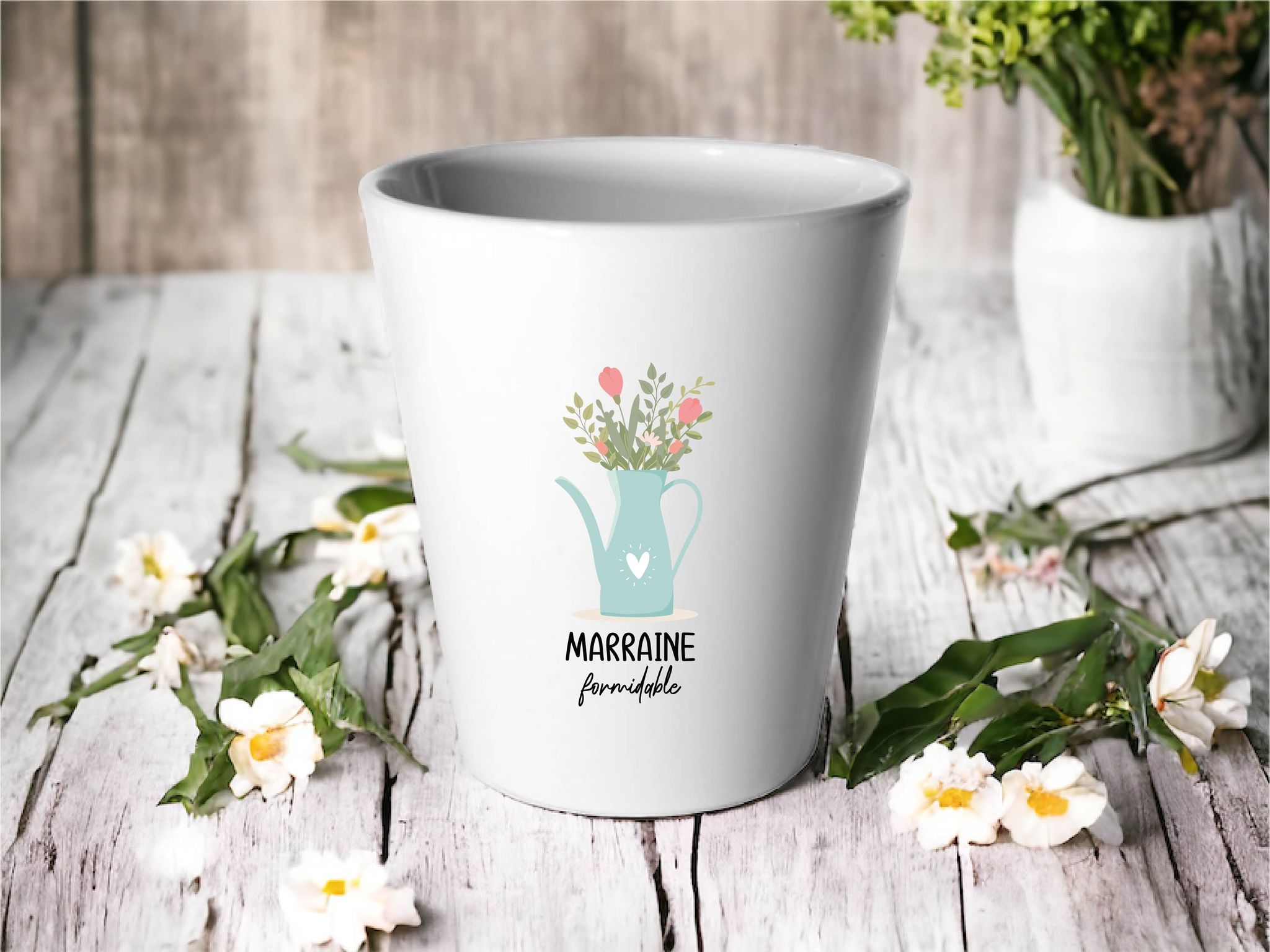 Cache-Pot Personnalisé « Marraine Fleurs » – Diamètre 90 mm
