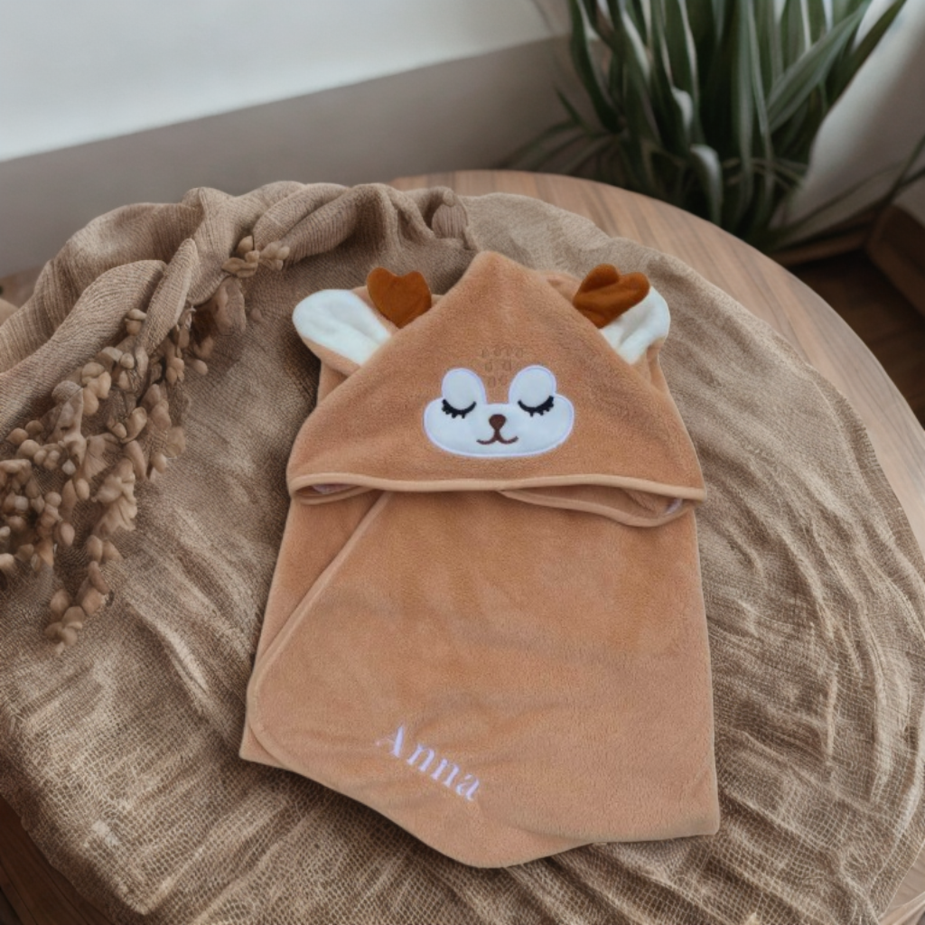 🦌 Cape de Bain Bébé Personnalisée « Petit Cerf » – Douceur et Élégance pour les Sorties de Bain 🦌