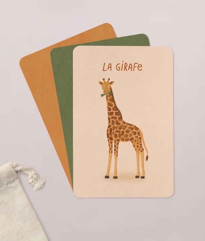 Un jeu éducatif et illustré pour découvrir les animaux sauvages et leurs particularités, livré dans un joli pochon en coton.