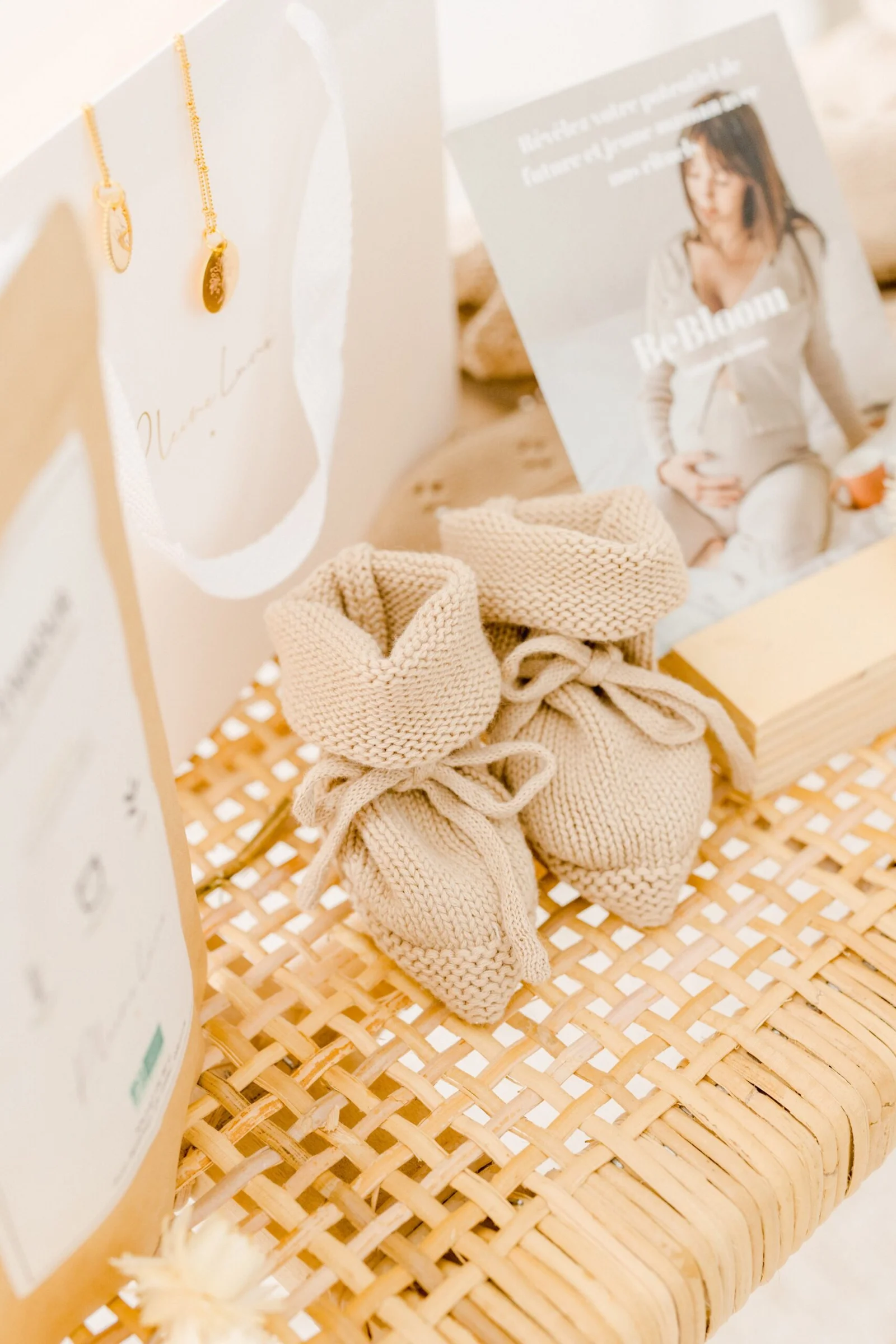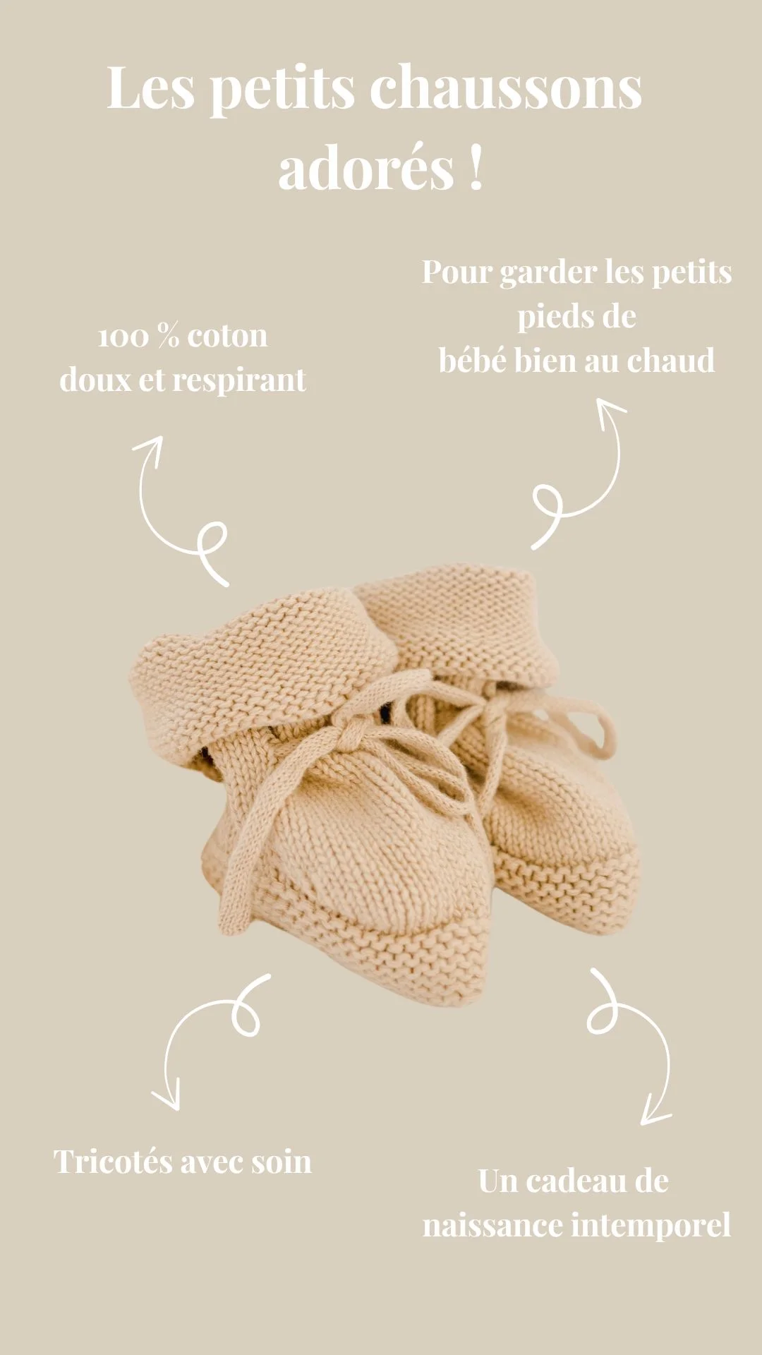 Tout en délicatesse, ces petits chaussons de naissance tricotés accompagneront votre bébé dès sa naissance et jusqu’à ses 3 mois. Confectionnés en coton, adapté à la peau délicate de bébé. Avec ses liens à nouer, ces chaussons réchauffent et protègent les petits pieds de votre nouveau-né. Ne sont-ils pas à croquer ?