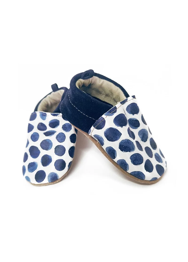 Les chaussons en cuir pois marine, la touche tendance pour une tenue.