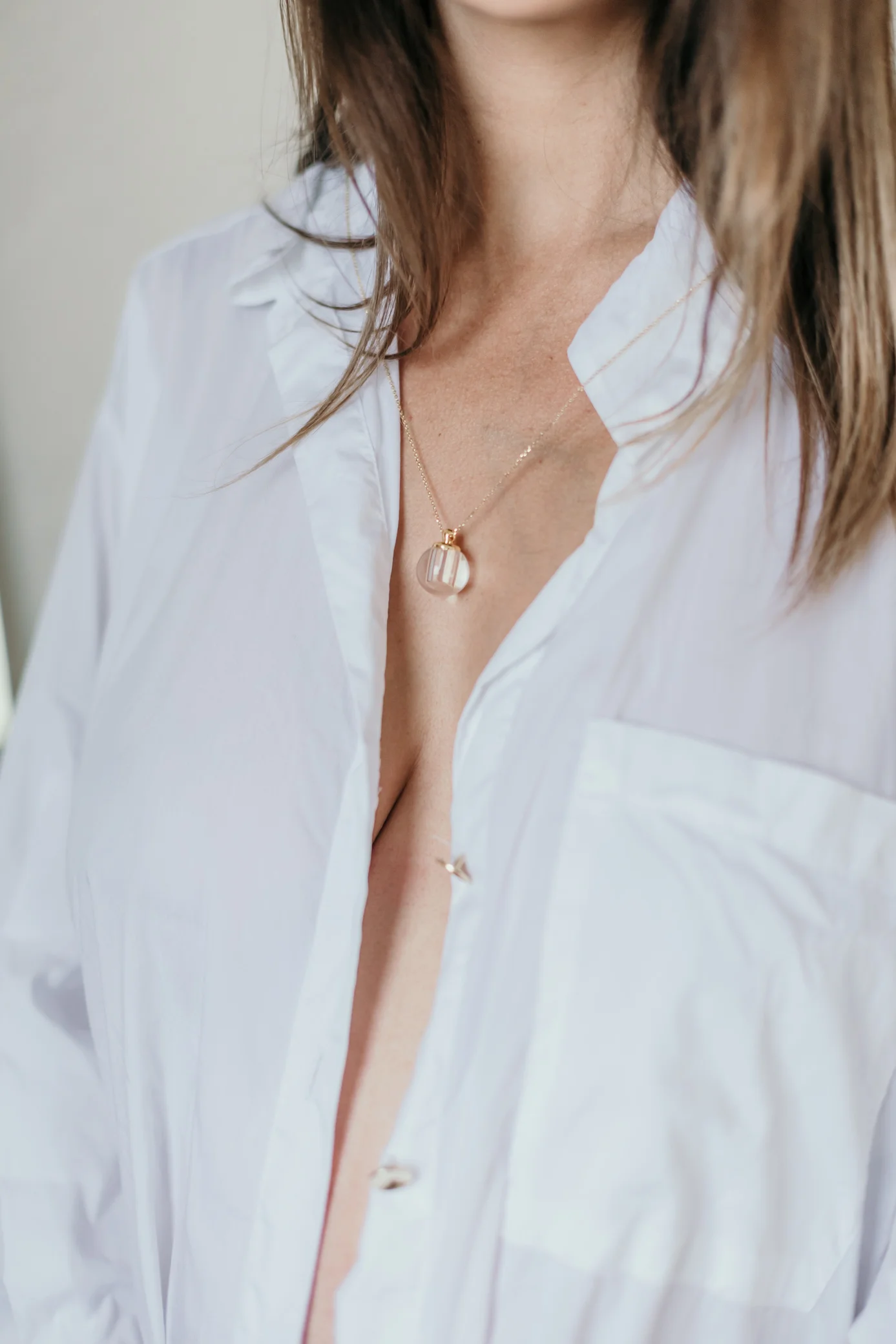 Notre collier amulette Voeux dorée à l’or fin 18 carats est un bijou porte-bonheur. Au cœur de sa délicate fiole de verre glissez un vœux, un gri-gri ou une pierre de naissance. Autant de précieux éléments porte-bonheur à porter près du cœur.
